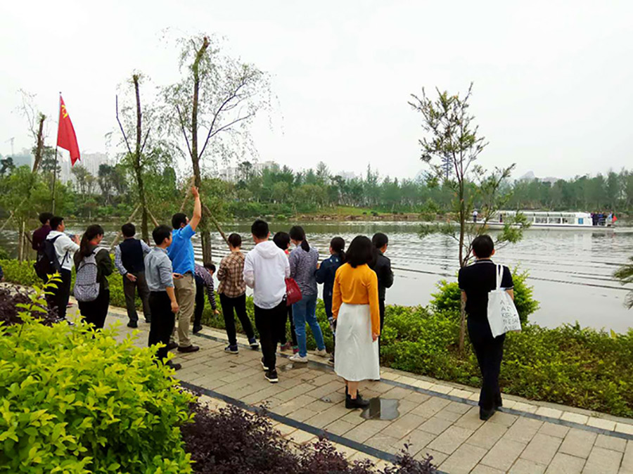 2018年5月4日,是“五四”青年節(jié),也是桂林市臨桂新區(qū)核心區(qū)水系正式通航的日子。新城投資集團(tuán)為慶?!拔逅摹鼻嗄旯?jié),以水系通航為契機(jī),組織集團(tuán)公司全體團(tuán)員開展環(huán)“新區(qū)核心區(qū)水系”的徒步活動。集團(tuán)公司黨支部副書記、副總裁鄧仁友,工會主席譚力源等領(lǐng)導(dǎo)參加本次活動。