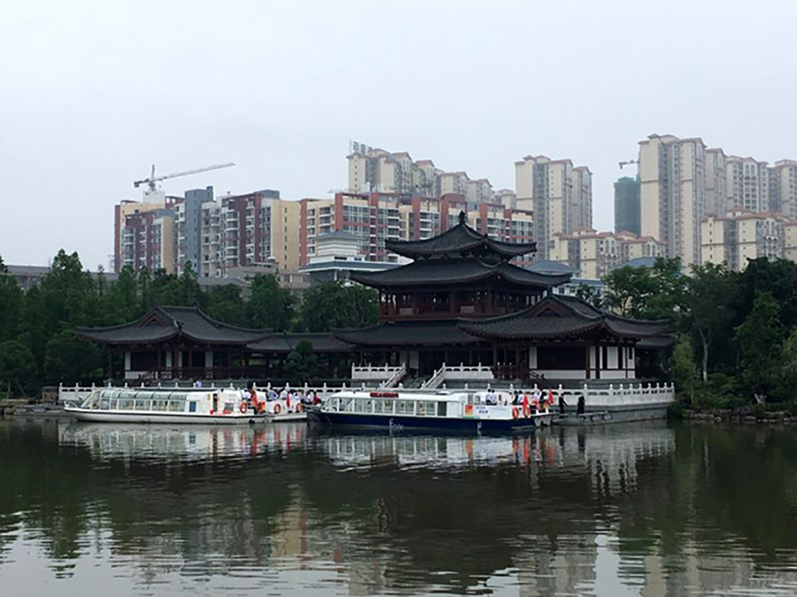 經(jīng)過太平橋、大觀樓等地方時,我們更是有幸與通航游船相會。游船在水中航行,水波漾開,亭臺浮動,恰似瓊樓玉宇、人間仙境。此情此景讓大家興奮不已,紛紛揮手吶喊,表達(dá)我們的激動之情,也彰顯了我們新城投資集團(tuán)員工朝氣蓬勃的精神面貌。