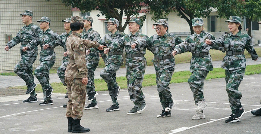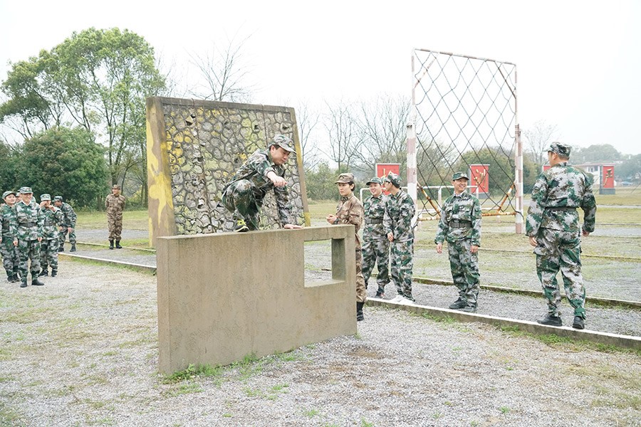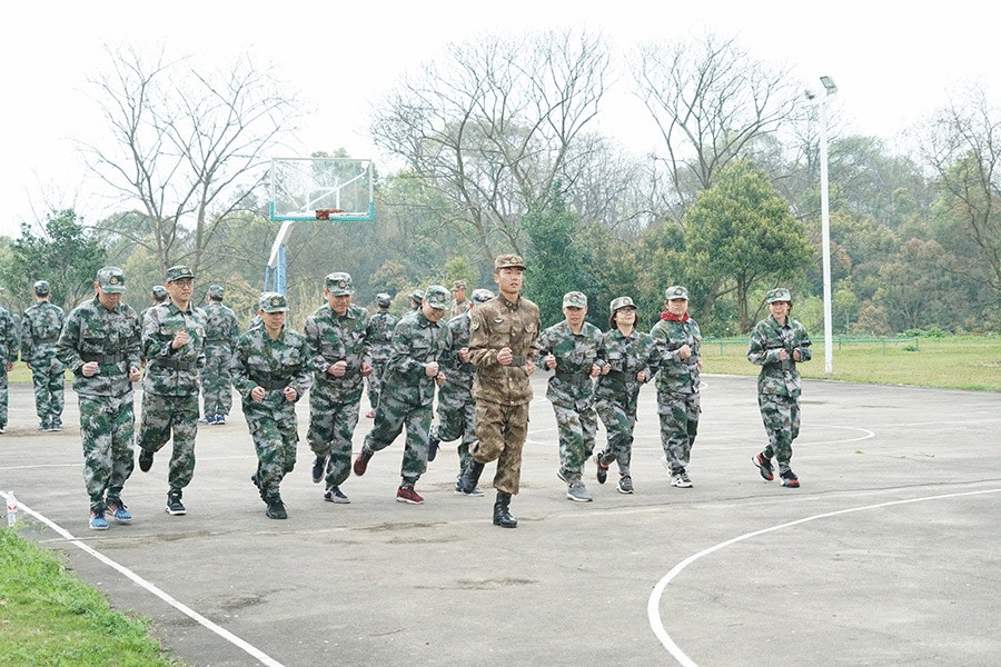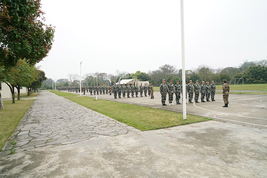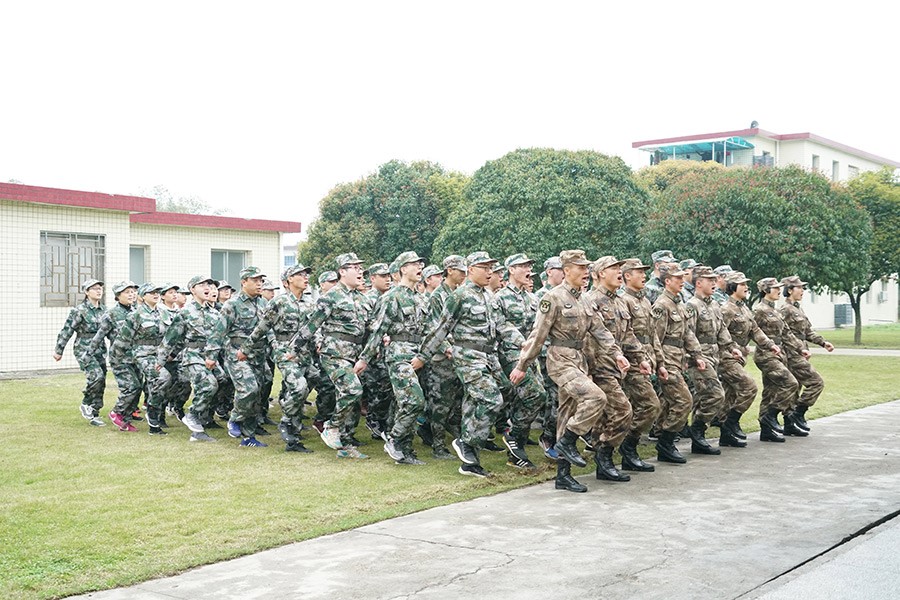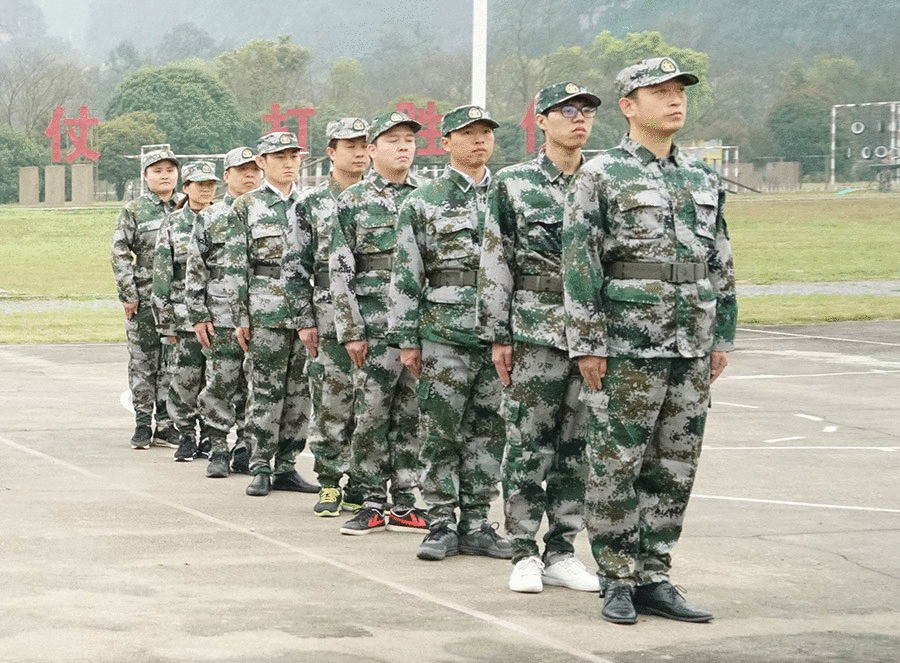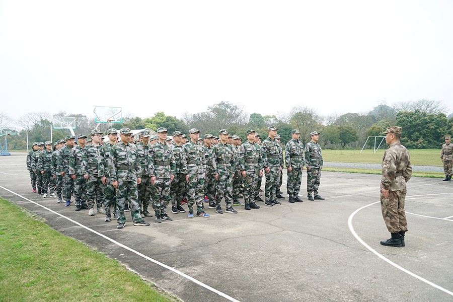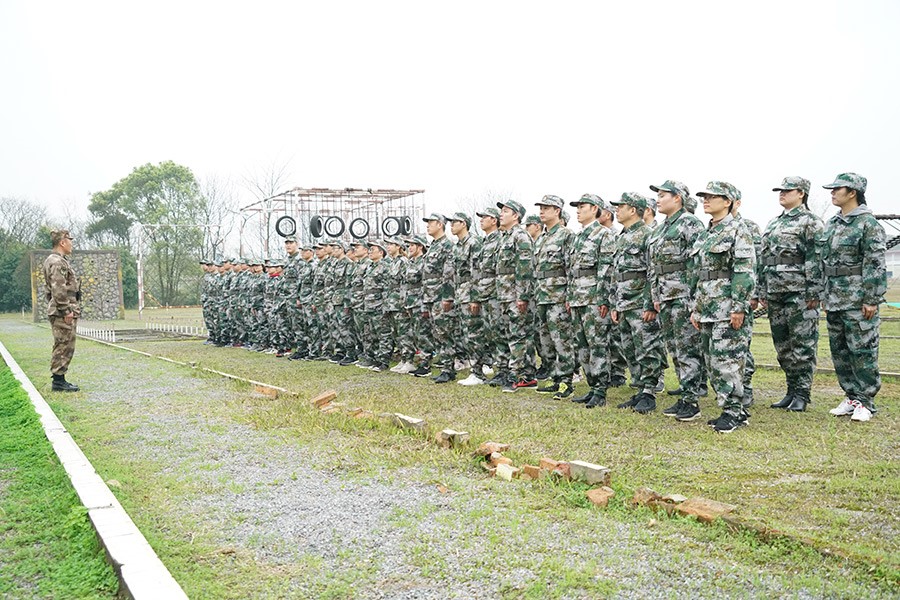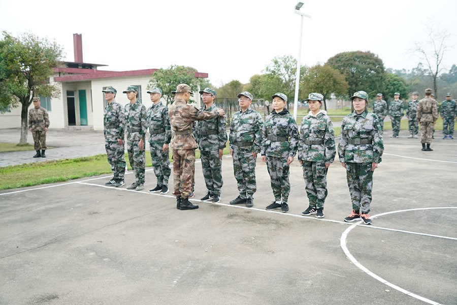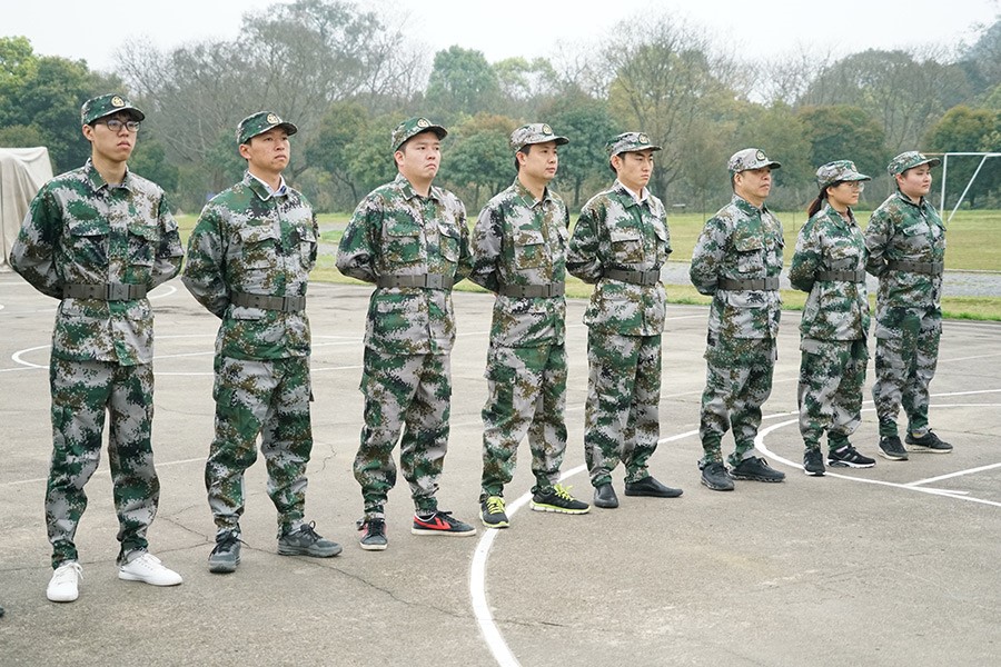 抵達(dá)訓(xùn)練場地后,全體人員換上迷彩服,拉開了一天封閉軍訓(xùn)的序幕。