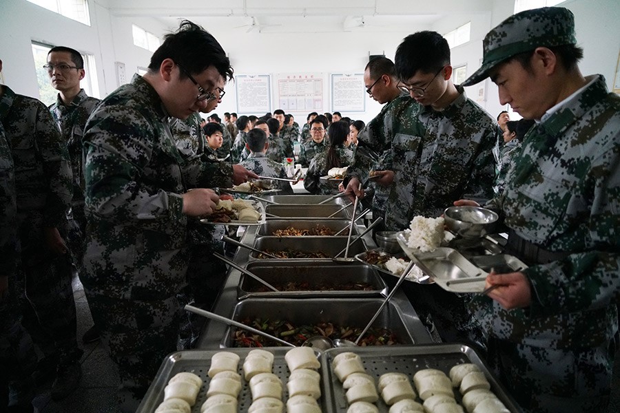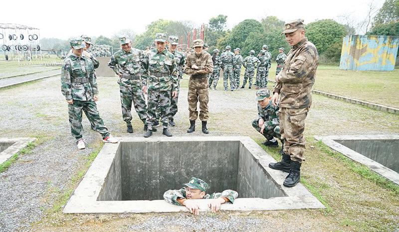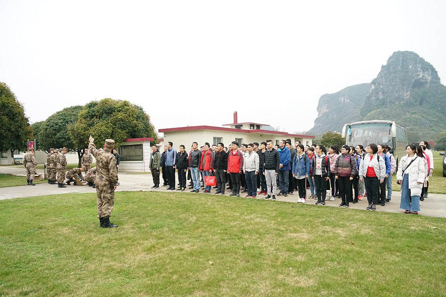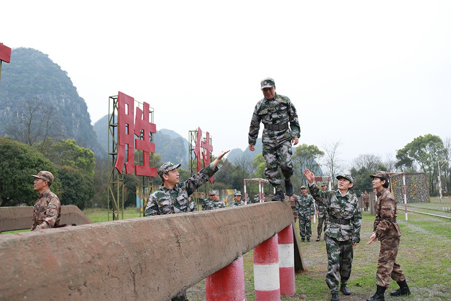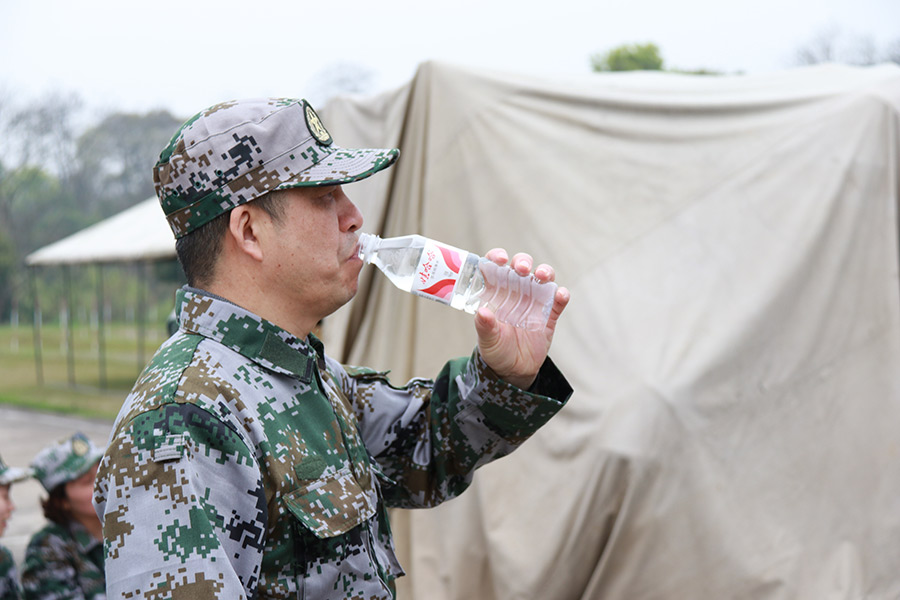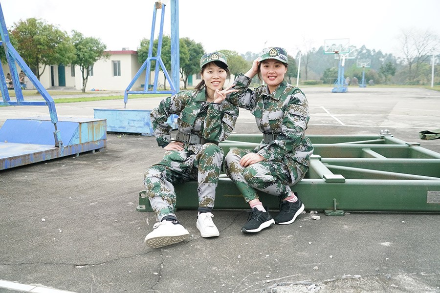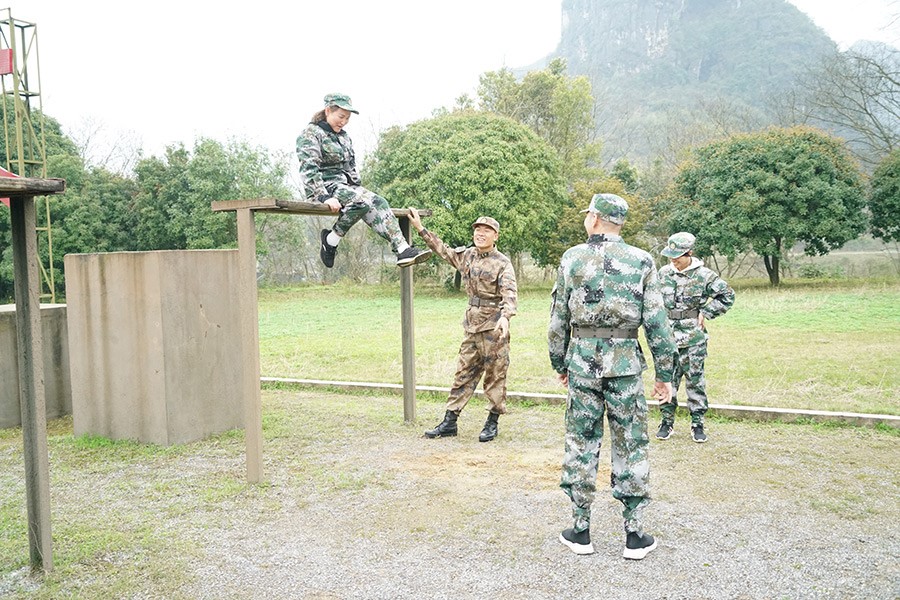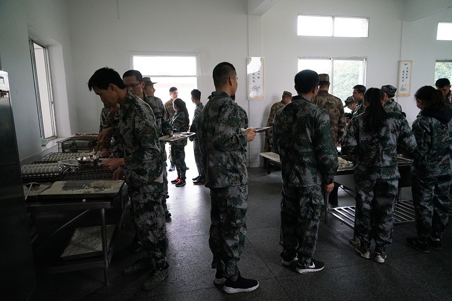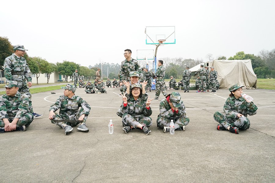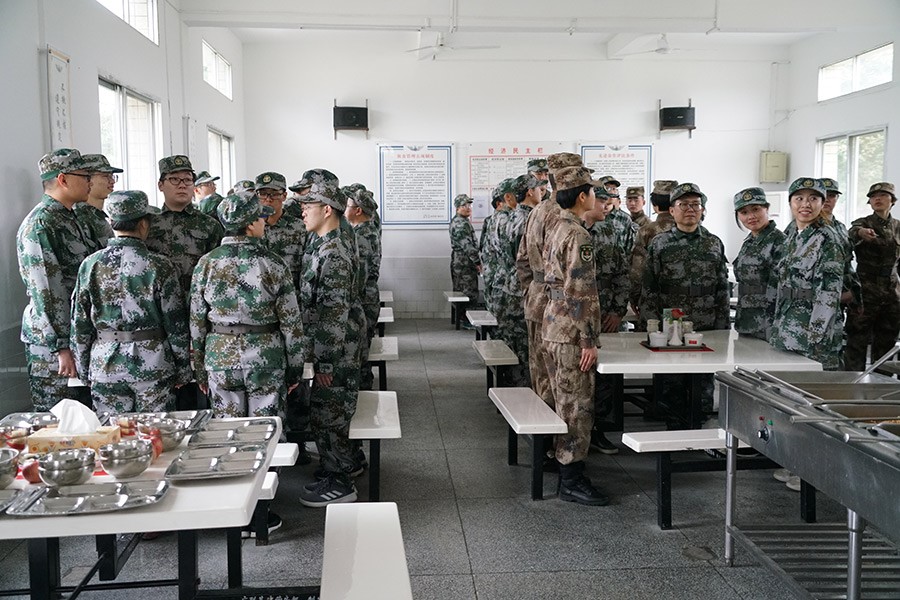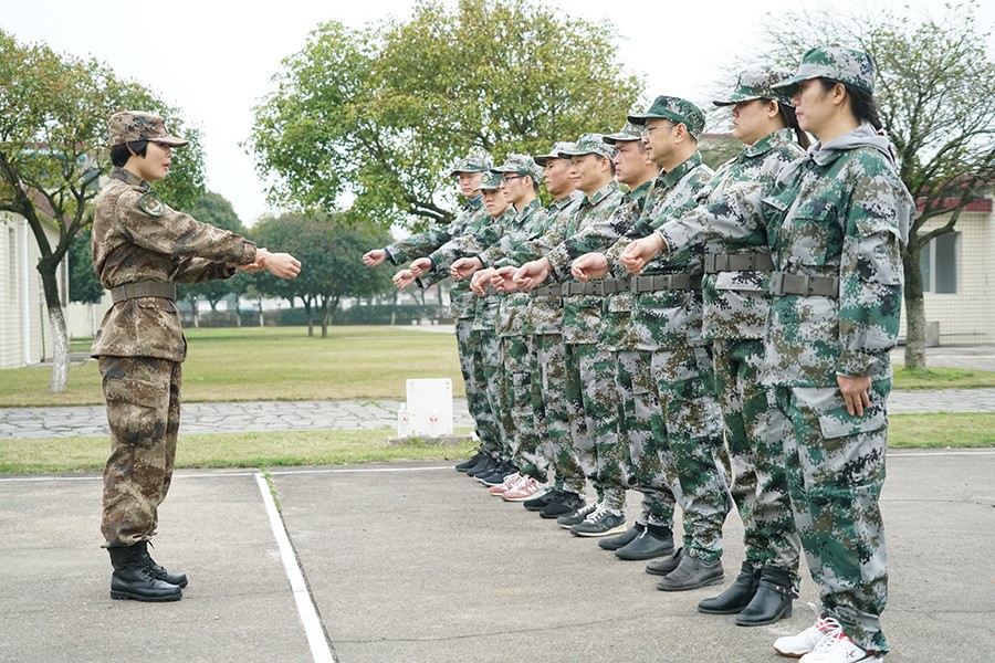 抵達(dá)訓(xùn)練場地后,全體人員換上迷彩服,拉開了一天封閉軍訓(xùn)的序幕。