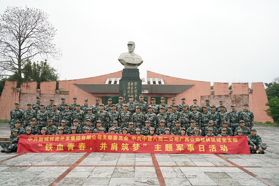 中共桂林新城投資開發(fā)集團(tuán)有限公司支部委員會、中共中建八局二公司廣西公司桂林區(qū)域黨支部于2018年10月30日成立聯(lián)合黨支部后,提出通過“企企聯(lián)建,強(qiáng)強(qiáng)聯(lián)合,將黨小組建立到項目上”的方式,共同打造“黨旗映勝地”國企黨建品牌。通過共建活動平臺,分享工作資源、交流工作經(jīng)驗、解決實際問題等途徑,實現(xiàn)黨的建設(shè)良性互動。3月16日,聯(lián)合黨支部組織黨員干部80余人開展了“鐵血青春,并肩筑夢”主題軍事日聯(lián)建活動,以準(zhǔn)軍事化訓(xùn)練的形式強(qiáng)化基層黨組織建設(shè)。