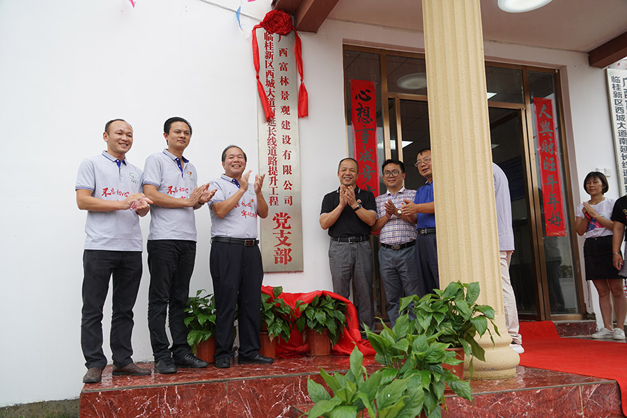 為了進(jìn)一步發(fā)揮基層黨組織戰(zhàn)斗堡壘作用,加快推進(jìn)項目建設(shè),6月26日下午,在西城大道南延長線項目現(xiàn)場,舉行了“廣西富林景觀建設(shè)有限公司臨桂新區(qū)西城大道南延長線道路提升工程黨支部”揭牌活動。