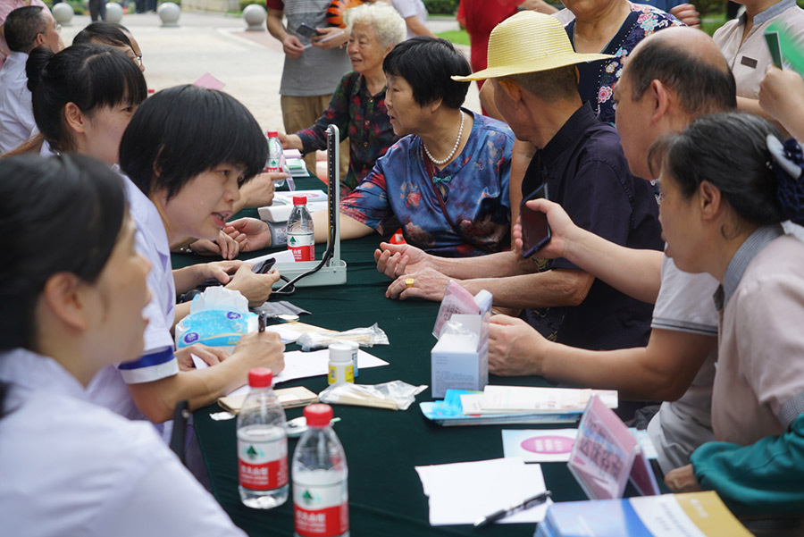 80歲的張老先生笑著說“現(xiàn)在不用去大醫(yī)院也可以享受到專業(yè)的醫(yī)療服務(wù),關(guān)鍵還是免費(fèi)的”。在黨員志愿者、醫(yī)護(hù)人員共同努力下,活動井然有序的進(jìn)行,現(xiàn)場充滿濃濃的溫情。