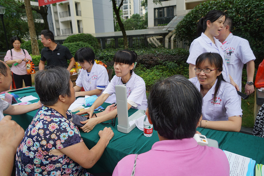 活動現(xiàn)場,心內(nèi)科、呼吸內(nèi)科、兒童保健專家們耐心解答居民咨詢的各類健康保健、護(hù)理健康、醫(yī)保費(fèi)用等方面問題,現(xiàn)場醫(yī)護(hù)人員還免費(fèi)為居民測血糖、血壓、身高、體重,受到大家的熱烈歡迎和一致好評。