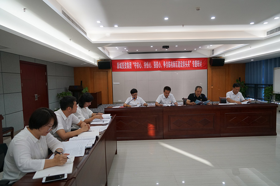 當天下午,新城投資集團黨員領導班子開展了“守初心、持恒心、強信心,爭當臨桂新區(qū)建設排頭兵”專題研討。