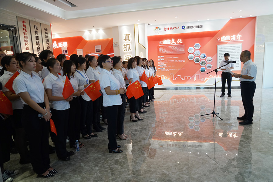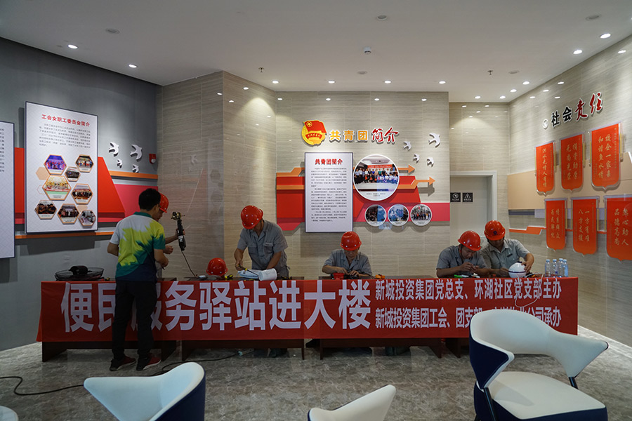 在中華人民共和國(guó)成立70周年即將來(lái)臨之際,9月30日上午,新城投資集團(tuán)黨總支聯(lián)合環(huán)湖社區(qū)黨支部、宏謀物業(yè)公司在新城投資集團(tuán)辦公大樓一樓舉辦“‘不忘初心、牢記使命’便民服務(wù)驛站進(jìn)大樓志愿服務(wù)活動(dòng)”,為在本大樓辦公的總工會(huì)、水利局、司法局員工提供小家電維修服務(wù),黨員以實(shí)際行動(dòng)踐行為身邊群眾辦實(shí)事、辦好事?;顒?dòng)在新城投資集團(tuán)黨總支、環(huán)湖社區(qū)黨支部全體黨員合唱的《我和我的祖國(guó)》歌聲中啟動(dòng),大家用嘹亮的歌聲、真摯的情感抒發(fā)出對(duì)偉大祖國(guó)的最美好的祝愿!集團(tuán)黨總支籌備工作領(lǐng)導(dǎo)小組組長(zhǎng)、董事長(zhǎng)周道林,黨總支籌備工作領(lǐng)導(dǎo)小組副組長(zhǎng)、副總經(jīng)理鄧仁友,環(huán)湖社區(qū)第一書(shū)記蔡燕,環(huán)湖社區(qū)黨支部書(shū)記、居委會(huì)主任李伊倩出席了活動(dòng)。