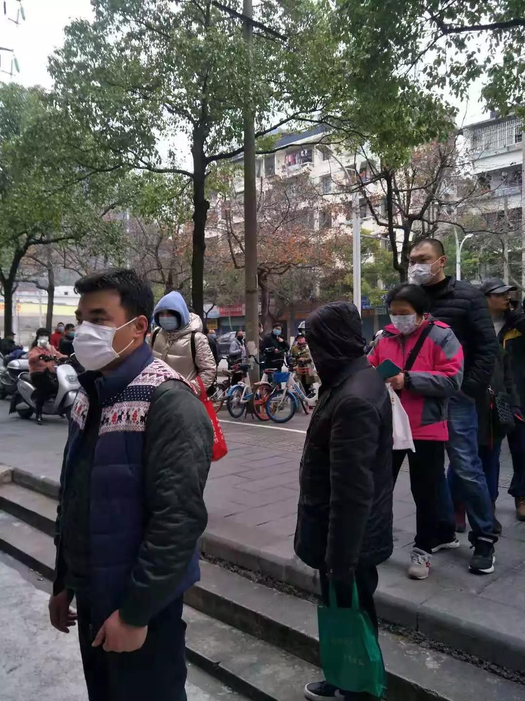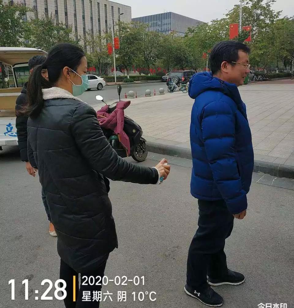 ▲冷冷的天氣,唐忠祥同志在各藥店和醫(yī)療器械機(jī)構(gòu)門口排隊(duì)采購物資。