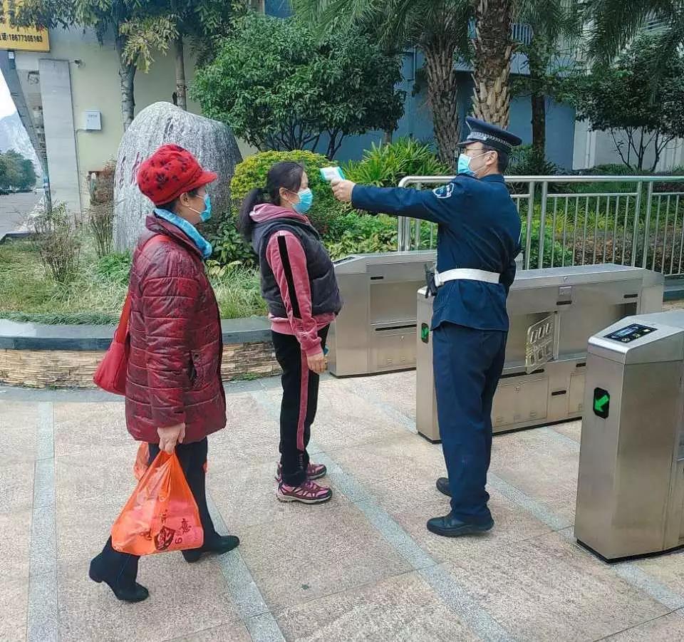 在新城國奧小區(qū)的東門、南門、及北門三大入口處,宏謀物業(yè)設(shè)立疫情防控崗,準(zhǔn)備好了酒精、消毒水等消殺用品和紅外線測(cè)溫儀。工作人員冒著可能被感染的風(fēng)險(xiǎn),堅(jiān)持對(duì)所有出入門崗的人員和車輛進(jìn)行排查,要求進(jìn)出的人員測(cè)量體溫,并為外出歸來的業(yè)主提供75%濃度的酒精進(jìn)行消毒。對(duì)體溫超過37度的人員詳細(xì)詢問其近期去往的地方和接觸的人員,并做好的記錄及時(shí)上報(bào)。堅(jiān)決做到“早發(fā)現(xiàn)、早報(bào)告、早隔離、早診斷、早治療”,科學(xué)防疫,有效遏制疫情的擴(kuò)散和蔓延,牢牢堅(jiān)守住疫情第一道防線,讓廣大業(yè)主在春節(jié)假期中過得安心和健康。