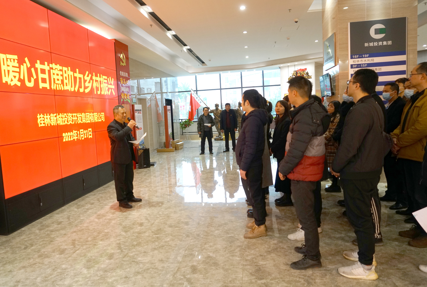 2022年1月21日,新城投資集團組織開展了“暖心甘蔗助力鄉(xiāng)村振興”活動。集團黨總支書記、董事長周道林,五通鎮(zhèn)羅江村黨總支部書記林次生參加活動?;顒佑杉瘓F黨總支委員、工會主席譚力源主持。