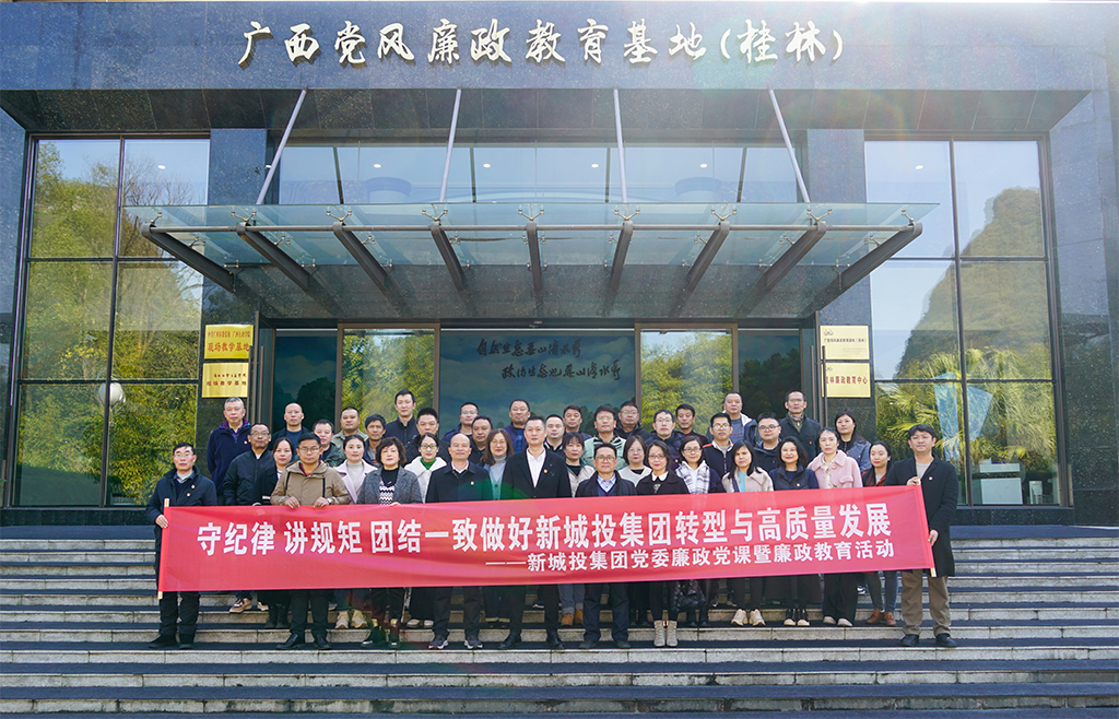 為進一步加強黨員干部黨性修養(yǎng),弘揚優(yōu)良作風(fēng),筑牢廣大黨員干部特別是黨員領(lǐng)導(dǎo)干部拒腐防變的思想道德防線,新年第二個工作日---2024年1月3日新城投集團黨委組織本部中層副職以上干部、子公司班子成員到廣西廉政教育基地(桂林)開展廉政黨課暨廉政教育活動。黨委副書記(主持工作)、副董事長、總經(jīng)理朱毅率班子成員全程參加,并開講新城投集團新年第一堂黨課,黨課由黨委副書記兼紀(jì)委書記譚力源主持。