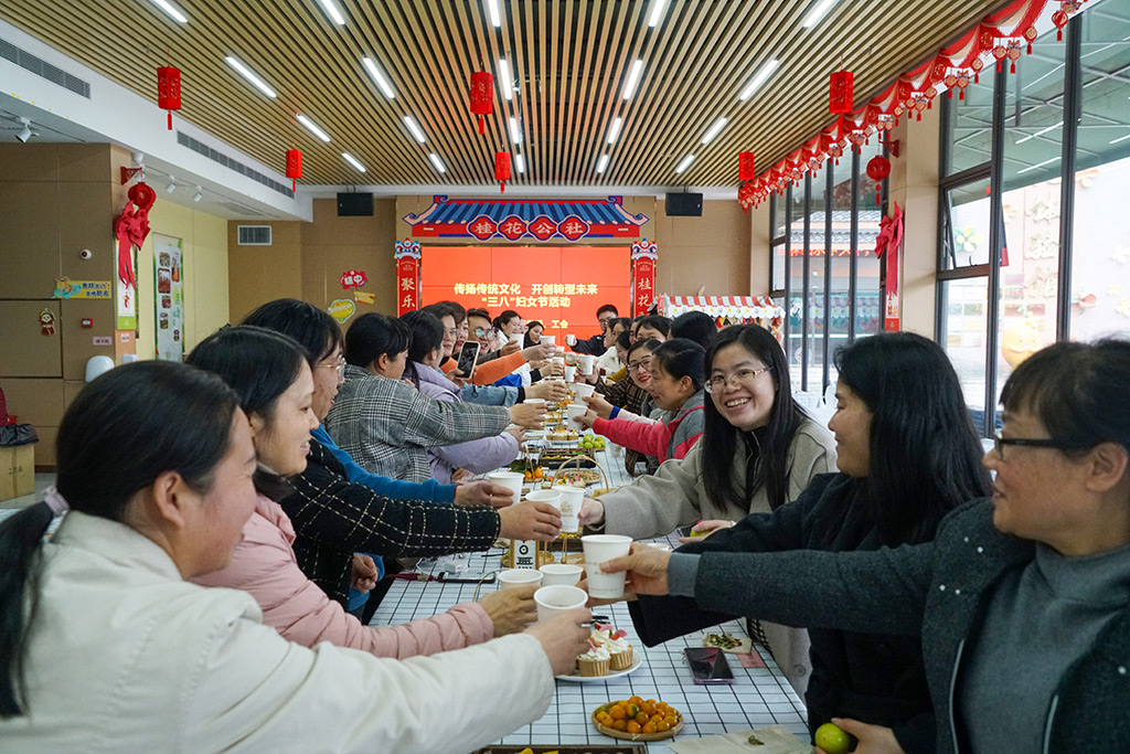 第三項(xiàng)活動(dòng)是午后茶敘。大家圍一方天地,生一爐煙火,飲一壺清茶,享受春日午后時(shí)光。輕松愉悅的氛圍讓女職工們沉浸其中,大家分別從“工作體會(huì)、日常生活、團(tuán)隊(duì)精神、經(jīng)營(yíng)理念等方面”暢談心得感悟,祝愿公司在轉(zhuǎn)型的路上越走越好,業(yè)績(jī)節(jié)節(jié)升高。聊到興起處,集團(tuán)工會(huì)主席譚力源忍不住高歌一曲助興,帶動(dòng)女職工們盡情展現(xiàn)自己的才藝,有的一展歌喉,有的輕歌曼舞,現(xiàn)場(chǎng)充滿了歡聲笑語,洋溢著喜悅的氣氛,大家暫時(shí)忘卻工作中的忙碌,治愈生活中的疲憊。