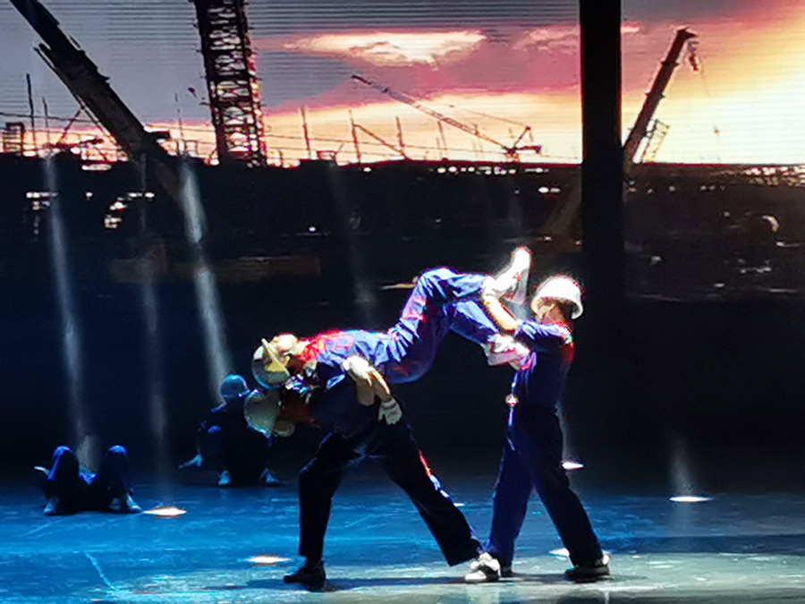 2019年8月10日晚上,桂林市慶祝新中國成立70周年“我和我的祖國”文藝調(diào)演國資委系統(tǒng)節(jié)目在桂林大劇院演出,經(jīng)過選拔,多個(gè)國資企業(yè)選送的13個(gè)節(jié)目精彩上演,打造了一場國資系統(tǒng)文藝活動盛宴。市委常委、常務(wù)副市長張曉武觀看了演出。在這次文藝調(diào)演晚會上,新城投資集團(tuán)選送的舞蹈《勝地筑夢人》,以其鮮明向上的主題、動感激情的節(jié)奏、精心感人的舞蹈設(shè)計(jì)、以及演員們整齊劃一、精神飽滿的精彩演出,成為晚會閃耀的亮點(diǎn)之一!