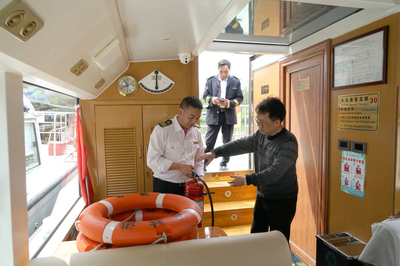在新區(qū)核心區(qū)水系游船碼頭,檢查組一行認(rèn)真檢查了各游船內(nèi)的滅火器材、消防設(shè)施、安全指示標(biāo)志、疏散通道等,要求各負(fù)責(zé)人員認(rèn)真做好汛期防汛安全工作,落實(shí)好安全管理人員責(zé)任,保證游船安全運(yùn)營(yíng)。