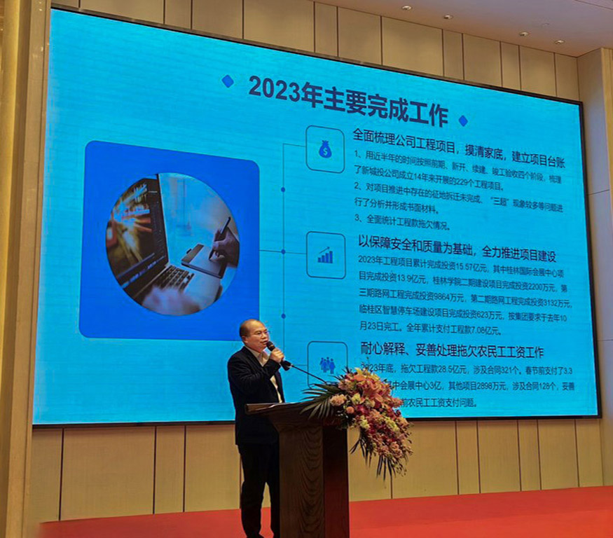 最后,朱毅在會上對公司一年來的發(fā)展進行了全面的總結(jié),從“活下去”、“站起來”、“走出去”三個方面描繪了2024年的發(fā)展思路,同時分析了面臨的嚴峻形勢,也對大家提出了希望和更高的要求,希望大家在城建集團的領(lǐng)導(dǎo)下,團結(jié)一心,共同努力,為公司的美好未來貢獻自己的力量和智慧!