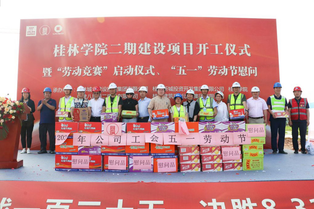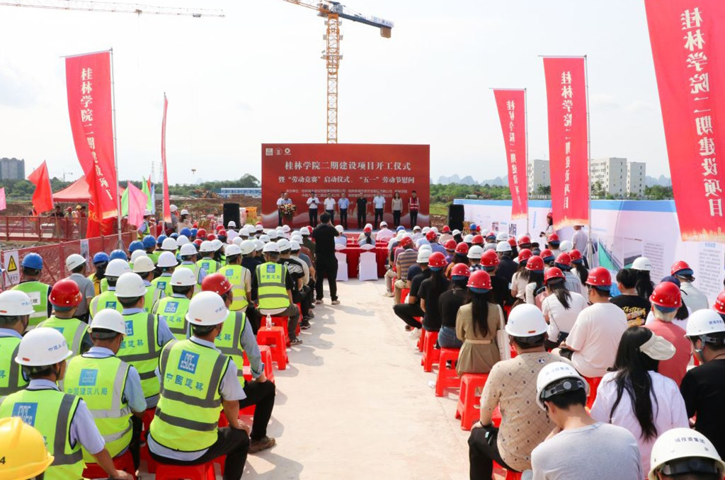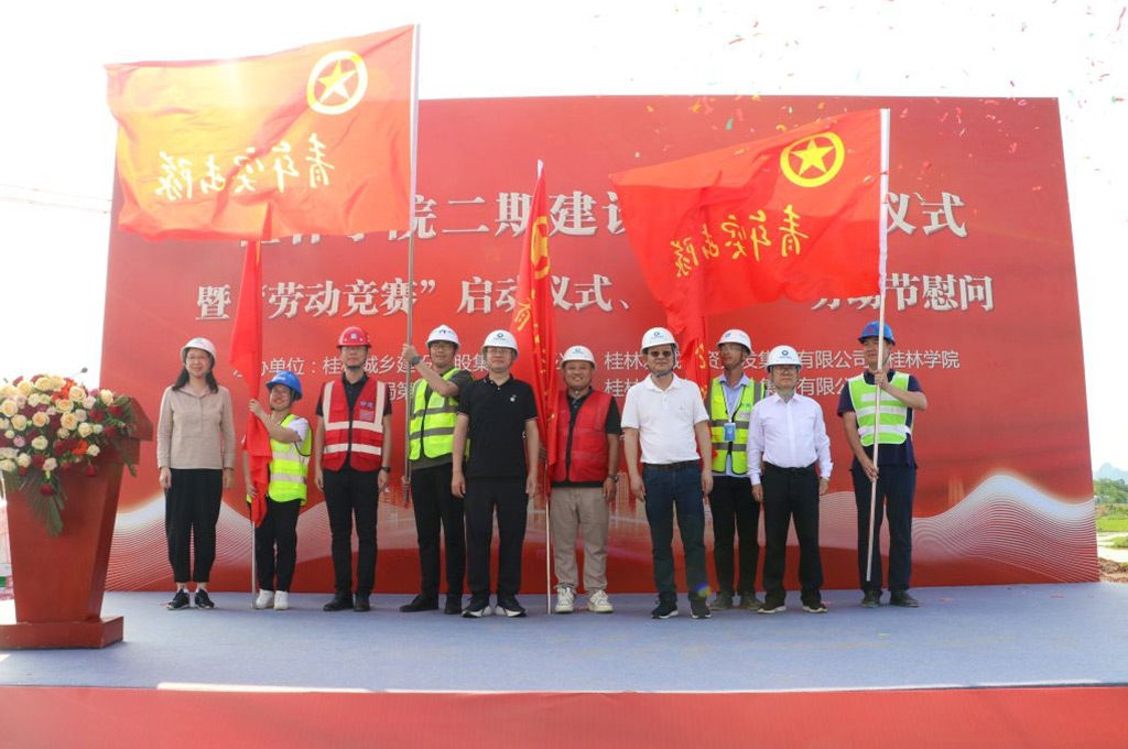 4月30日下午,桂林城鄉(xiāng)建設控股集團有限公司下屬桂林學院二期建設項目開工儀式暨“勞動競賽”啟動儀式、“五一”勞動節(jié)慰問活動在桂林學院施工現(xiàn)場隆重舉行。城建集團領導肖笛波、諸葛長、粟義春、黃江訓、董潤秀、王巍、鄭善華,新城投集團領導朱毅、譚力源、劉敏,桂林建筑規(guī)劃設計集團有限公司黨委書記陸衛(wèi)堅,中建八局第二公司廣西公司領導王紹舉、徐海銀、柳云岳,桂林學院領導楊樹喆、唐文紅、劉文革、楊慶慶、何玲、蔣毅等共同出席儀式活動。儀式活動由桂林學院二期建設項目部總負責人、新城投集團黨委委員、副總經(jīng)理葉青旺主持。