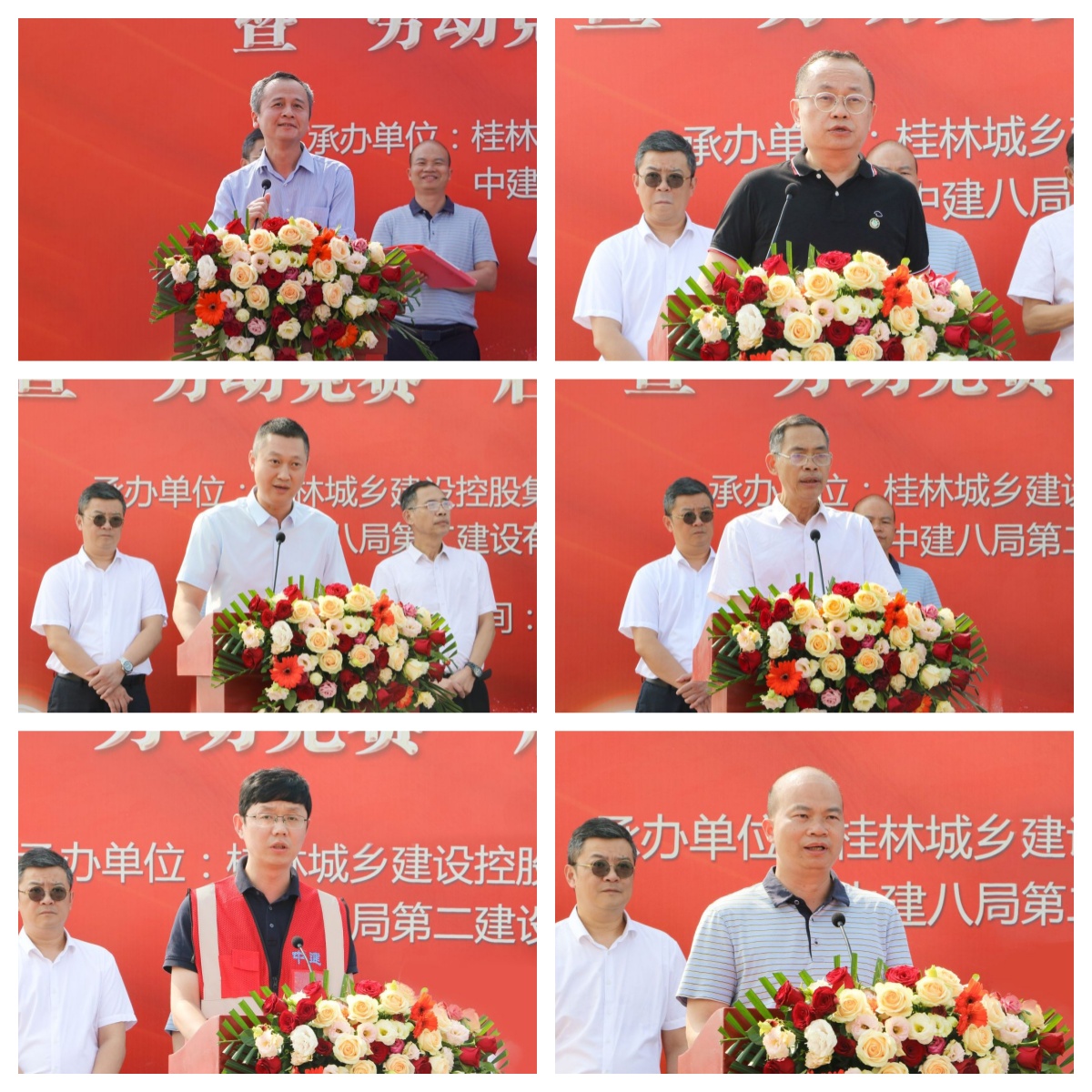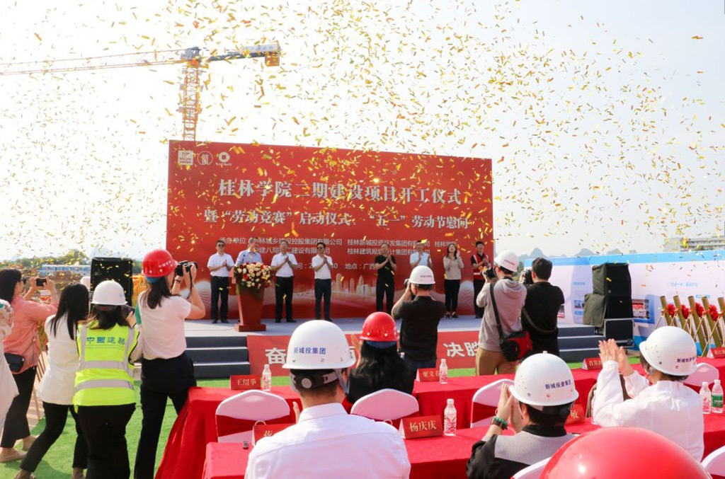 開工儀式上,城建集團黨委副書記、桂林學院法定代表人諸葛長,新城投集團黨委副書記(主持工作)、副董事長、總經(jīng)理朱毅,中建八局第二公司廣西公司黨總支副書記、執(zhí)行總經(jīng)理王紹舉,桂林學院黨委副書記、董事、校長楊樹喆相繼致辭或講話。城建集團黨委副書記、副董事長、總裁肖笛波宣布“桂林學院二期建設項目”開工。