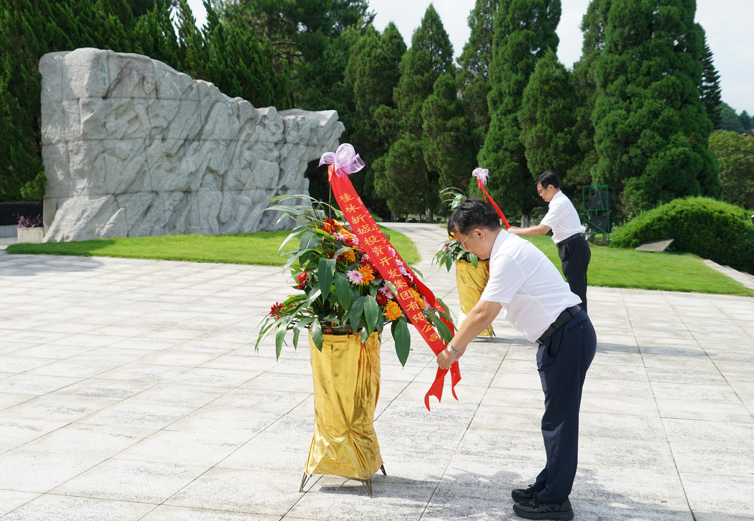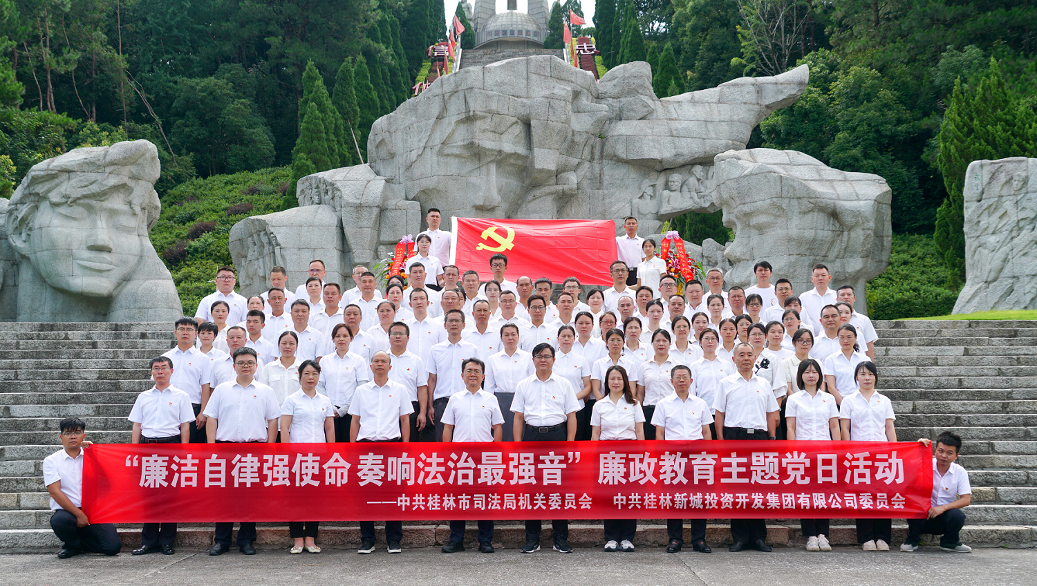 活動(dòng)當(dāng)天,大家首先來(lái)到桂林興安縣湘江烈士紀(jì)念碑園,在莊嚴(yán)的紀(jì)念碑前整齊列隊(duì),懷著崇敬的心情向烈士敬獻(xiàn)花籃,表達(dá)對(duì)革命先烈的深切緬懷和崇高敬意。在市司法局黨組書記、局長(zhǎng)韓覓的帶領(lǐng)下,全體黨員高舉右手,重溫入黨誓詞,堅(jiān)定為共產(chǎn)主義事業(yè)奮斗終身的信念與決心。