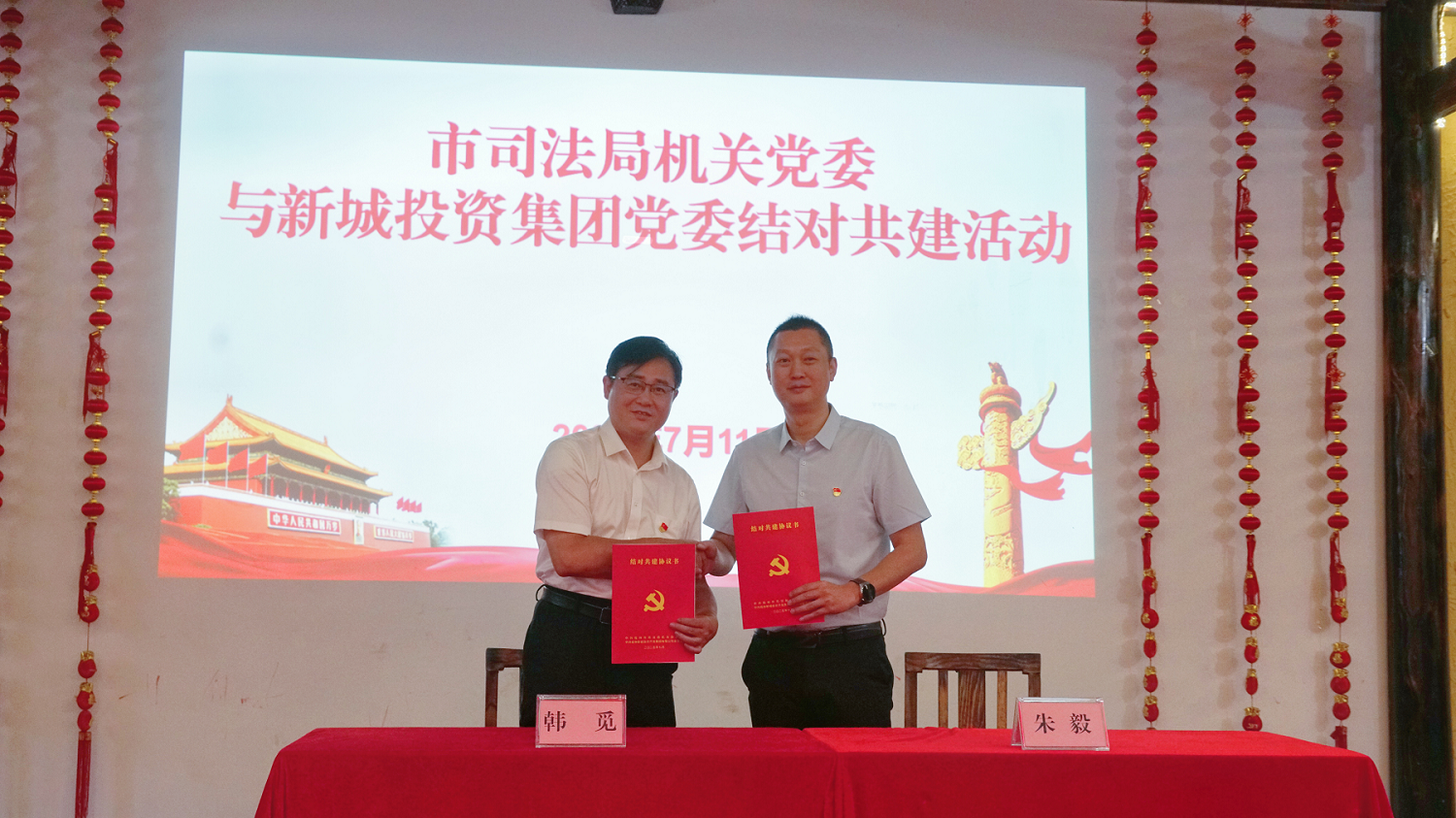 活動(dòng)最后,市司法局黨組書記、局長(zhǎng)韓覓和新城投集團(tuán)黨委書記、董事長(zhǎng)朱毅分別代表雙方黨委簽訂結(jié)對(duì)共建協(xié)議。以結(jié)對(duì)共建為紐帶,搭建交流合作的橋梁,發(fā)揮司法局專業(yè)領(lǐng)航作用,指導(dǎo)幫助新城投集團(tuán)解決“化債最后一公里”難題。